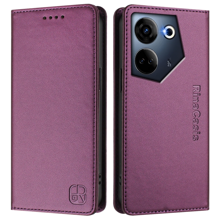 Funda de Cuero Rfid para Tecno Camon 20 4G y 20 Pro 4G Rc01 con Doble Pliegue y Succión Magnética (Violeta)