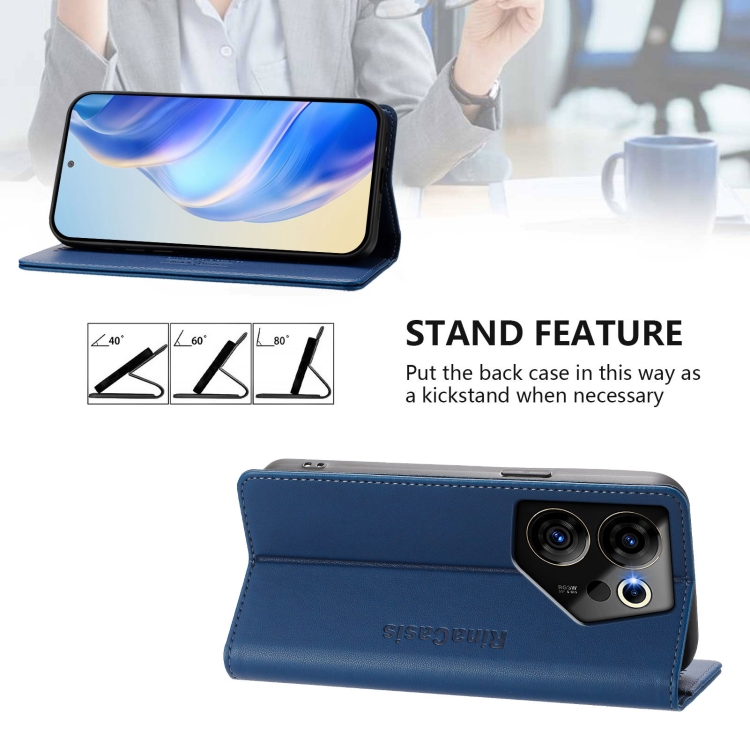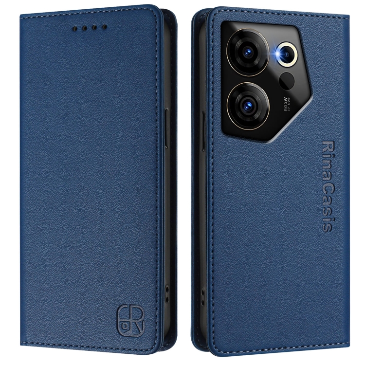 Funda de Cuero con Doble Pliegue y Succión Magnética Rfid para Tecno Camon 20 Premier 5G Rc01 (Azul Oscuro)