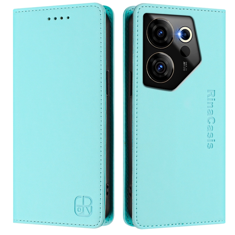 Funda de Cuero para Tecno Camon 20 Premier 5G Rc01 con Doble Pliegue y Succión Magnética Rfid (Verde Menta)
