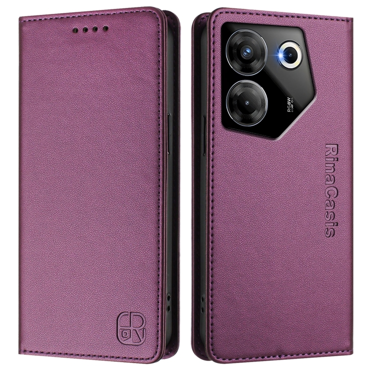 Funda de Cuero con Doble Pliegue y Cierre Magnético RFID para Tecno Camon 20 Pro 5G Rc01 (Violeta)