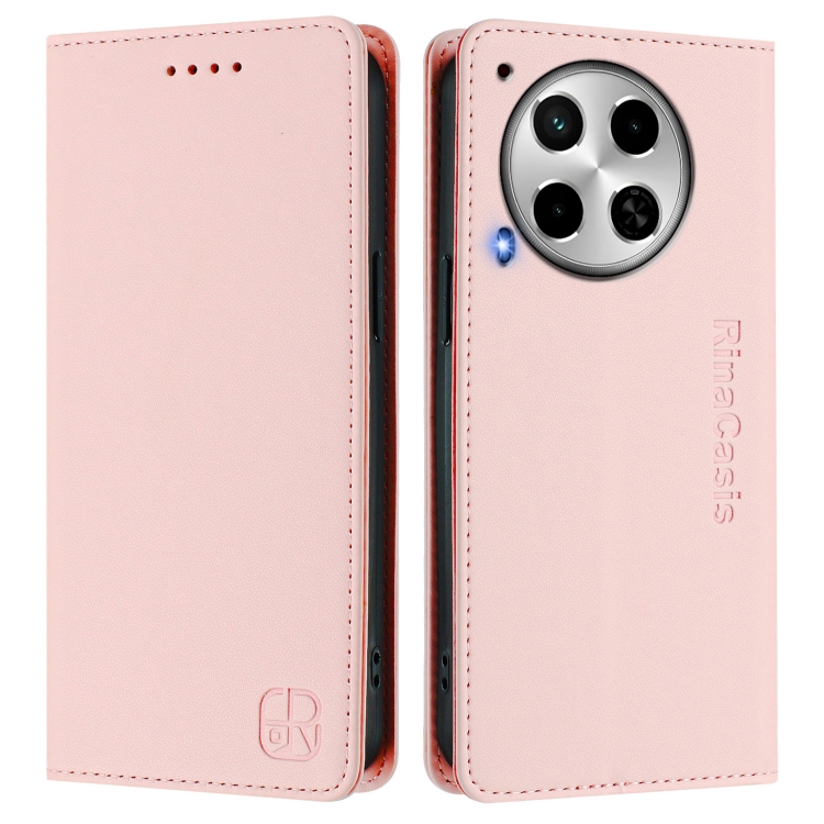 Funda de Cuero RFID con Doble Pliegue y Succión Magnética para Tecno Camon 30 4G/5G Rc01 (Rosa)