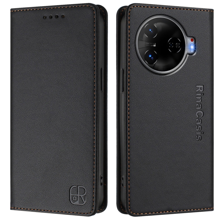 Funda de Cuero con Doble Pliegue y Succión Magnética Rfid para Tecno Camon 30 Pro 5G Rc01 (Negra)