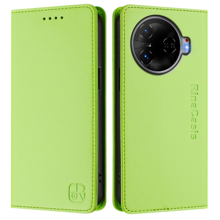 Funda de Cuero con Doble Pliegue y Succión Magnética Rfid para Tecno Camon 30 Pro 5G Rc01 (Verde)