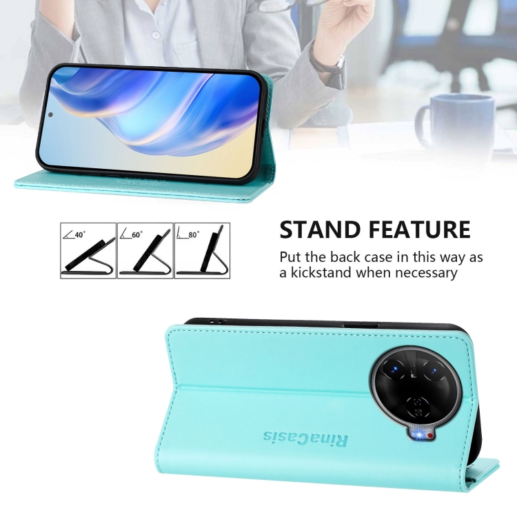 Funda de Cuero con Doble Pliegue y Succión Magnética Rfid para Tecno Camon 30 Pro 5G Rc01 (Verde Menta)