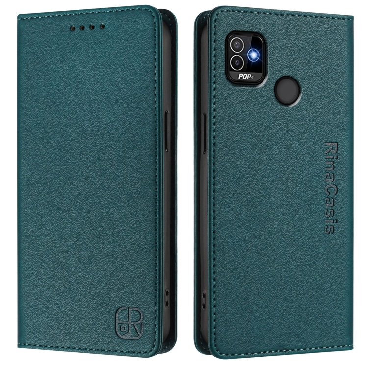 Funda de Cuero con Doble Pliegue y Succión Magnética RFID para Tecno Pop 5 Rc01 (Verde Oscuro)