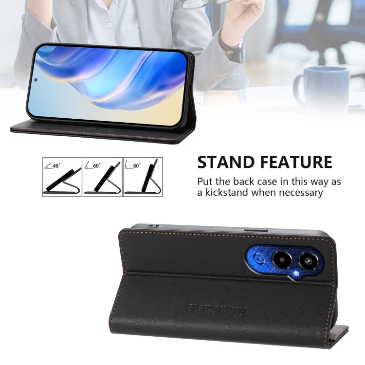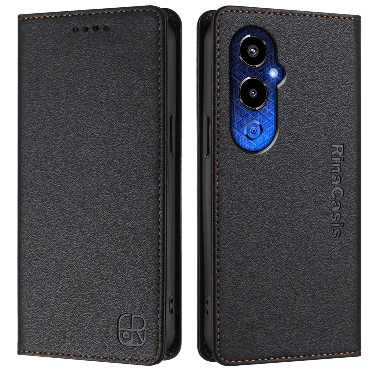 Funda de Cuero con Doble Pliegue y Succión Magnética RFID para Tecno Pova 4 Pro 4G Rc01 (Negra)
