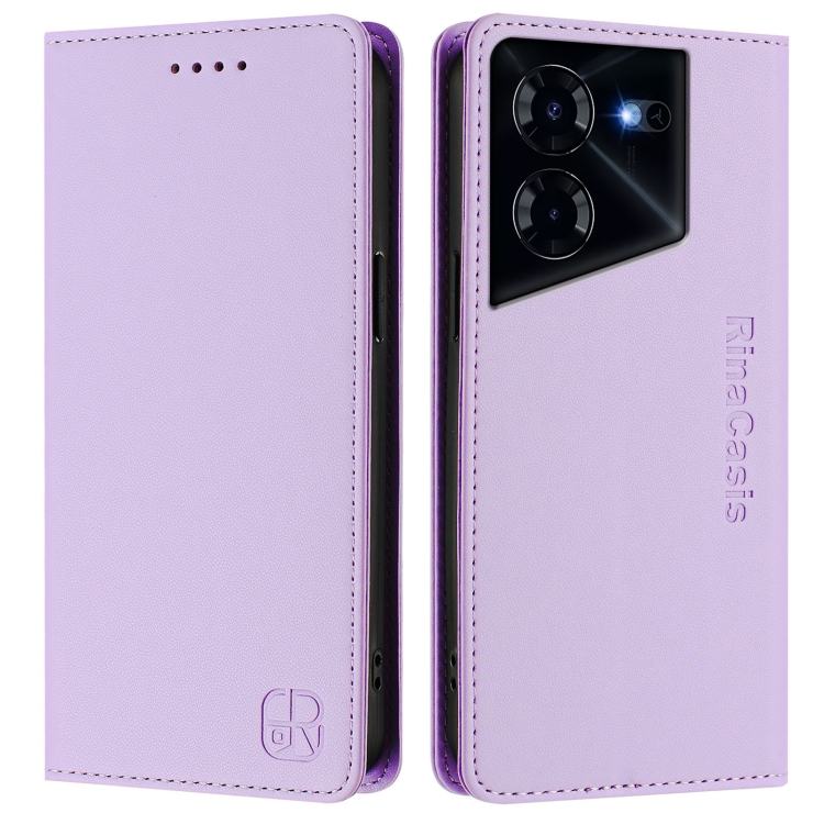 Funda de Cuero para Tecno Pova 5 Pro 5G Rc01 con Doble Pliegue y Succión Magnética Rfid (Morado Claro)