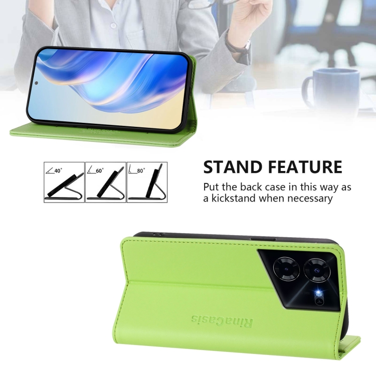 Funda de Cuero para Tecno Pova 5 Pro 5G Rc01 con Doble Pliegue y Succión Magnética Rfid (Verde Hierba)