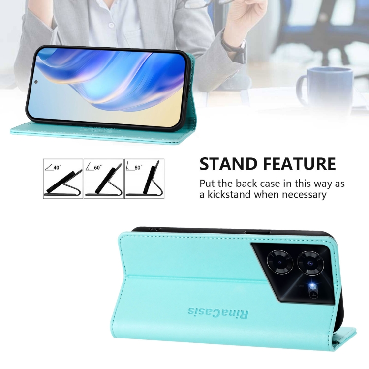 Funda de Cuero con Doble Pliegue y Succión Magnética Rfid para Tecno Pova 5 Pro 5G Rc01 (Verde Menta)