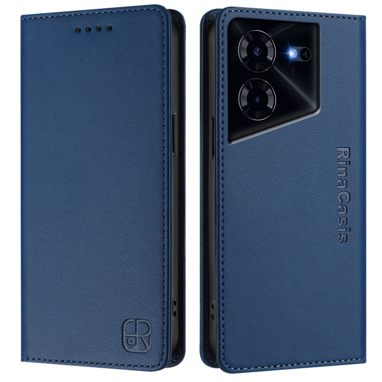 Funda de Cuero Rfid para Tecno Pova 5 Rc01 con Doble Pliegue y Succión Magnética (Azul Oscuro)