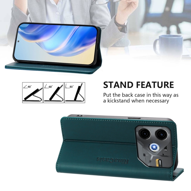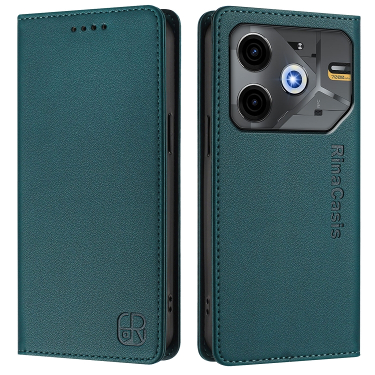 Funda de Cuero Rfid para Tecno Pova 6 Neo Rc01 con Doble Pliegue y Succión Magnética (Verde Oscuro)