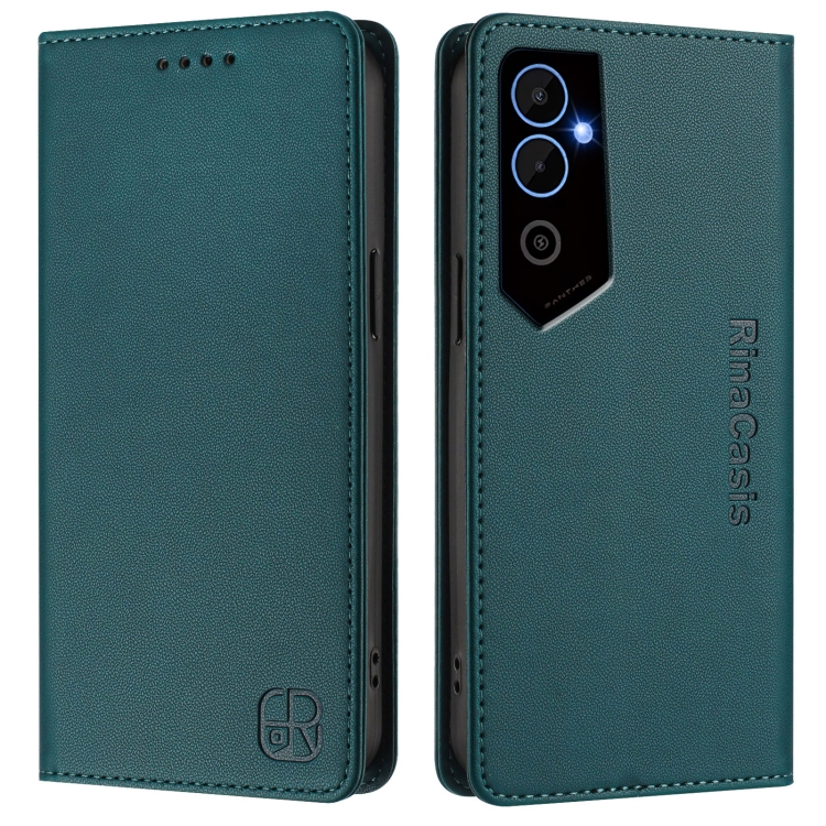 Funda de Cuero Rfid para Tecno Pova Neo 2 Rc01 con Doble Pliegue y Succión Magnética (Verde Oscuro)