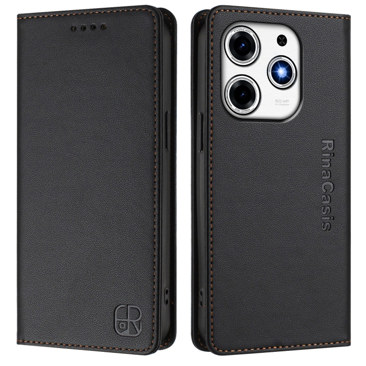 Funda de Cuero para Tecno Spark 10 Pro Magic Rc01 con Doble Pliegue y Succión Magnética Rfid (Negra)