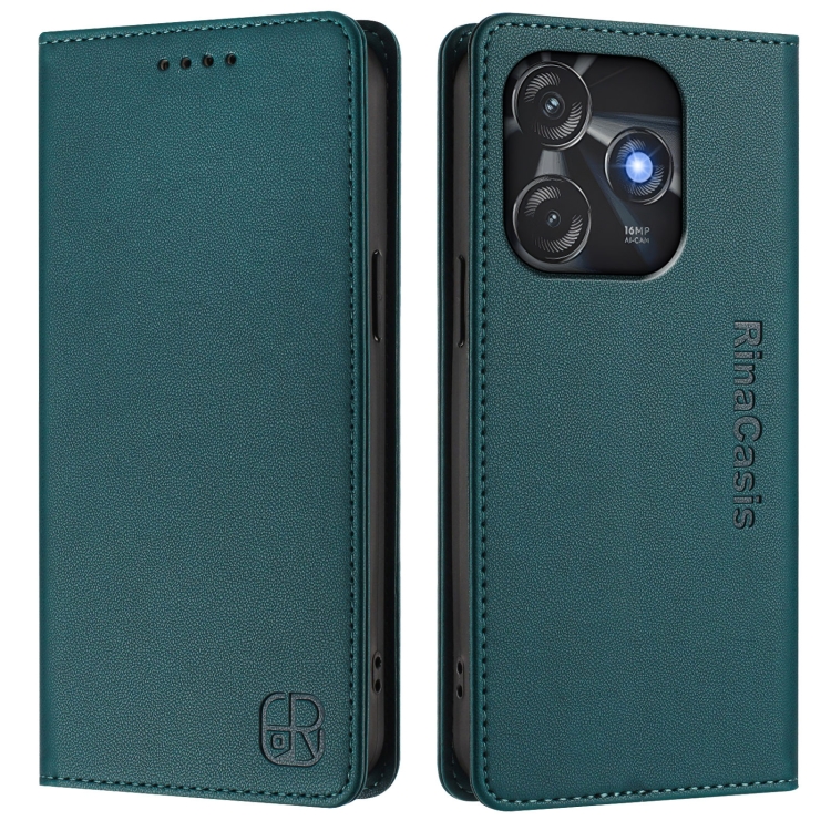 Funda de Cuero Rfid para Tecno Spark 10C / 10 4G Rc01 con Doble Pliegue y Succión Magnética (Verde Oscuro)
