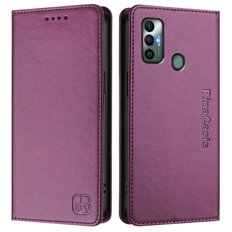 Funda de Cuero Rfid para Tecno Spark 7 / 7T Rc01 con Doble Pliegue y Succión Magnética (Violeta)