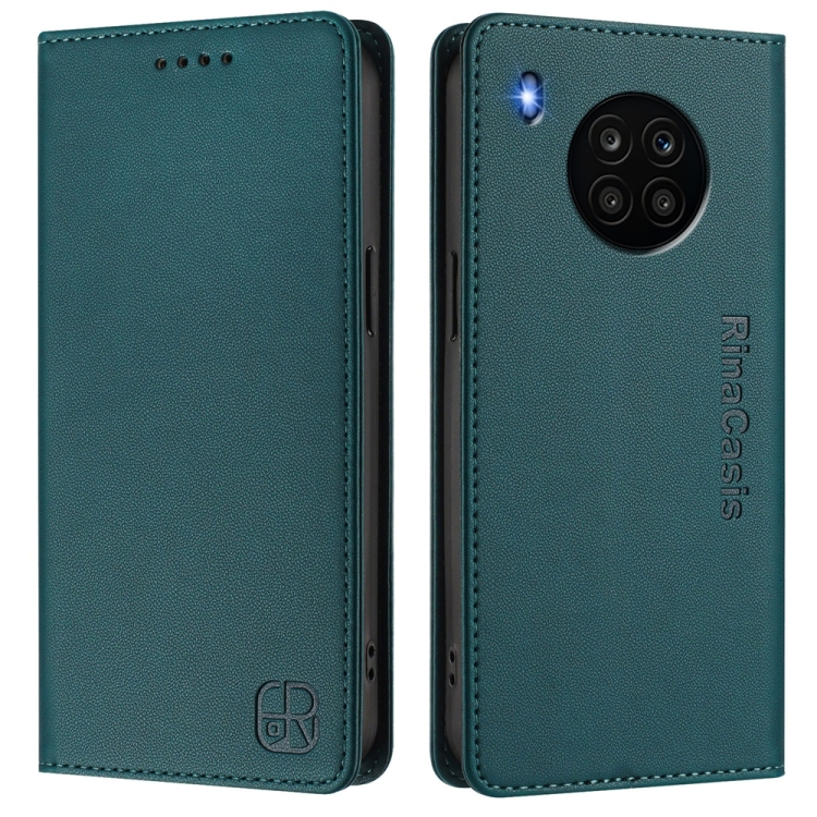 Funda de Cuero para Honor 50 Lite Rc01 con Doble Pliegue y Succión Magnética Rfid (Verde Oscuro)