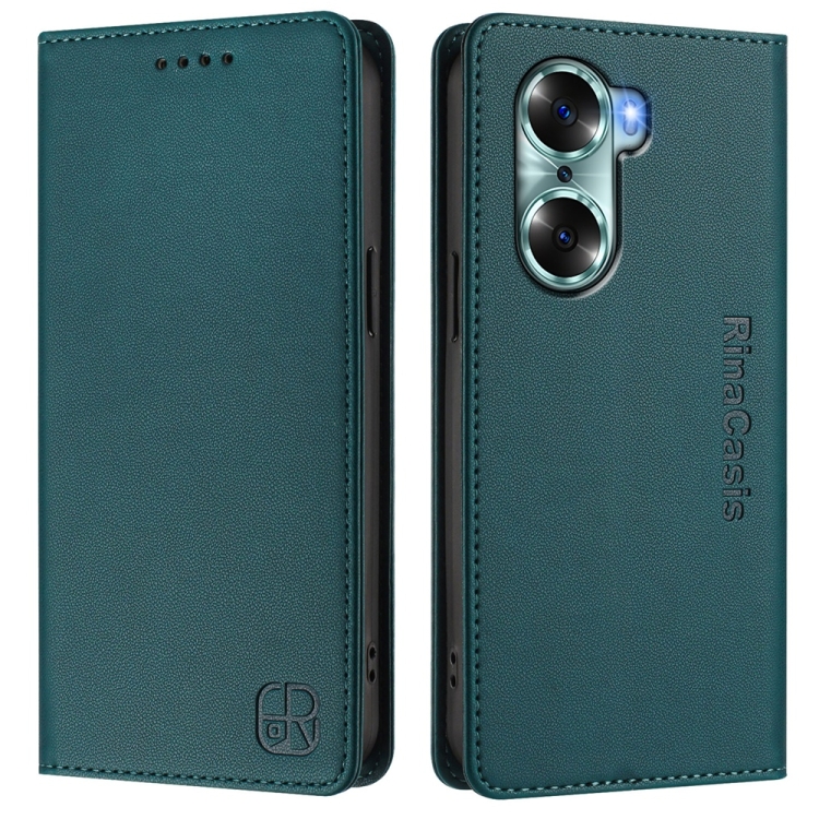 Funda de Cuero para Honor 60 Rc01 con Doble Pliegue Succión Magnética y Rfid (Verde Oscuro)