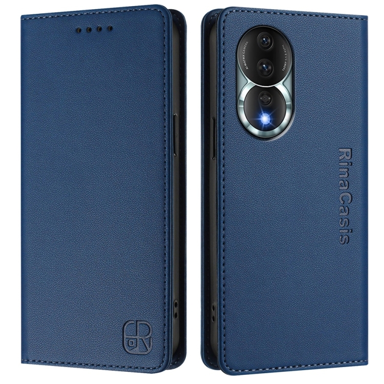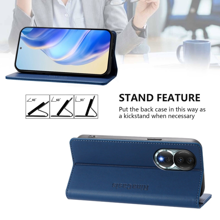 Funda de Cuero Rfid con Doble Pliegue y Succión Magnética para Honor 80 Rc01 (Azul Oscuro)