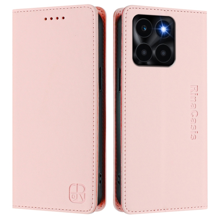 Funda de Cuero con Doble Pliegue y Succión Magnética Rfid para Honor X6A Rc01 (Rosa)