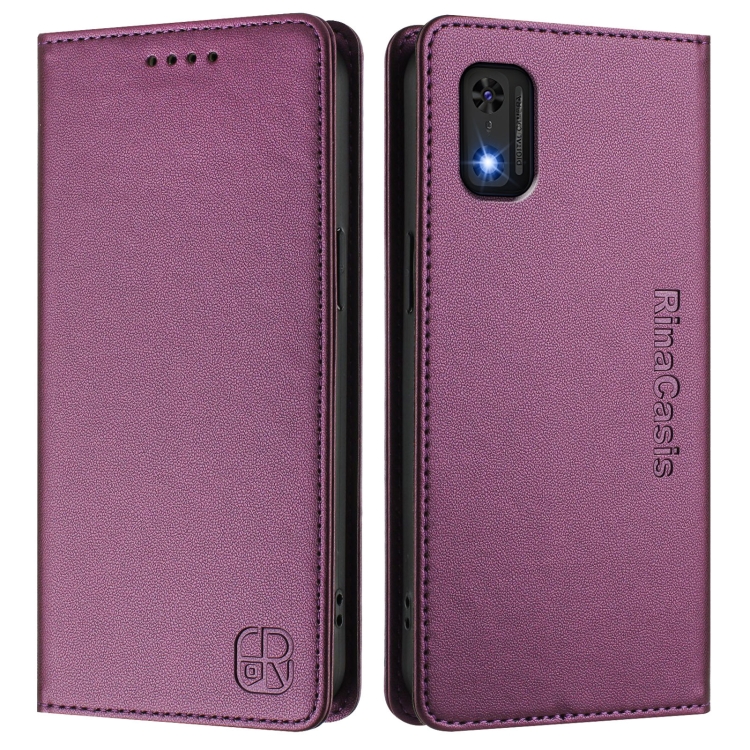Funda de Cuero con Doble Pliegue y Succión Magnética RFID para Itel A23 Pro / A17 / Tecno Pop 5 Rc01 (Violeta)