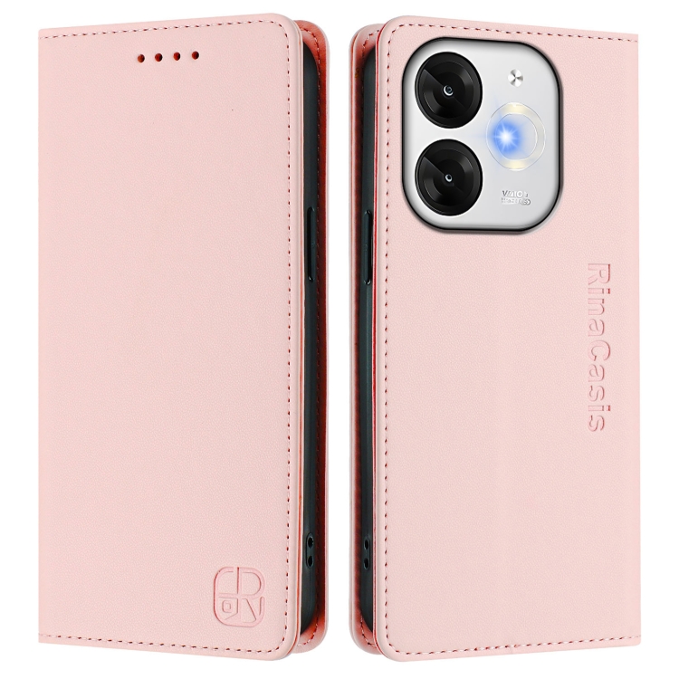 Funda de Cuero con Doble Pliegue y Succión Magnética Rfid para Teléfono Itel A80 4G Rc01 (Rosa)