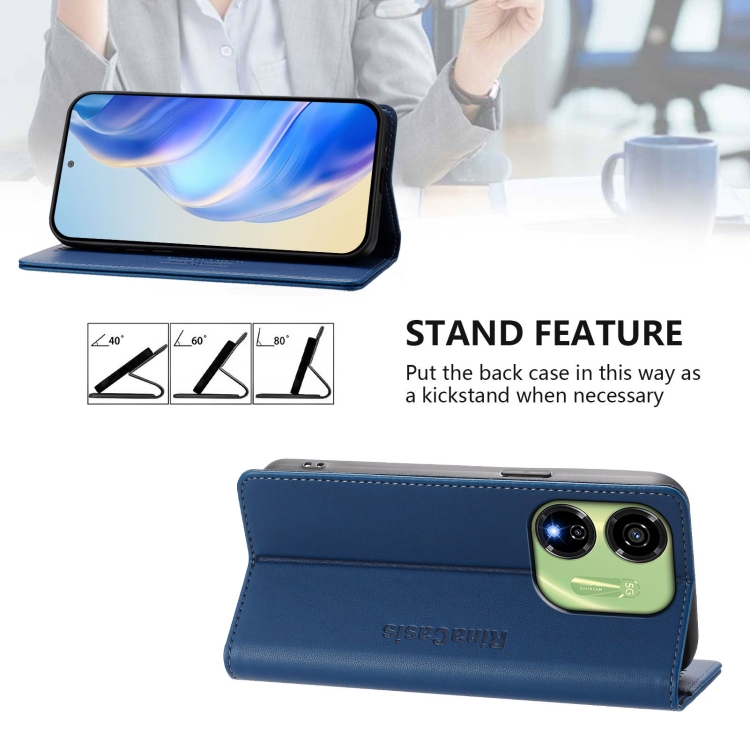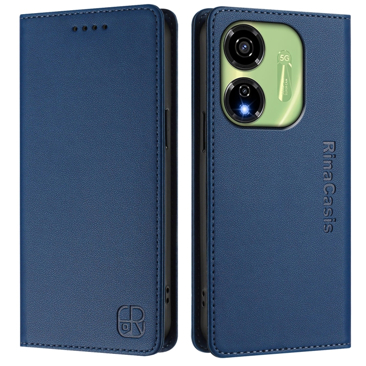 Funda de Cuero para Teléfono Itel P55 5G Rc01 con Doble Pliegue y Succión Magnética Rfid (Azul Oscuro)
