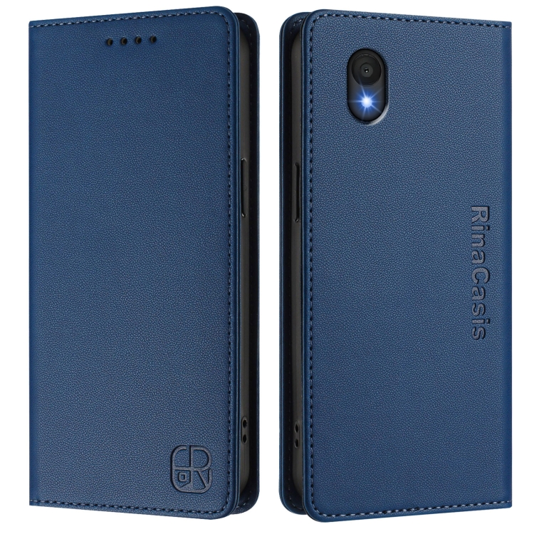 Funda de Cuero para Teléfono TCL 201 Rc01 con Doble Pliegue y Succión Magnética Rfid (Azul Oscuro)