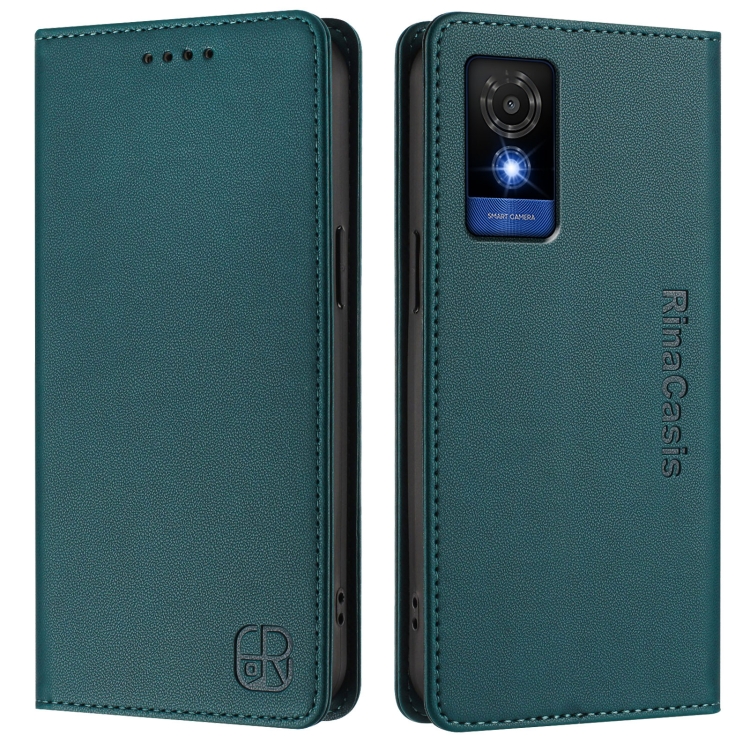 Funda de Cuero para Teléfono TCL 501 Rc01 con Doble Pliegue y Succión Magnética Rfid (Verde Oscuro)