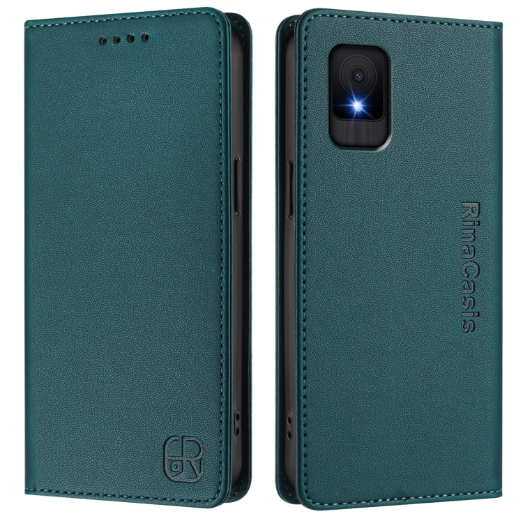 Funda de Cuero para Teléfono TCL 502 Rc01 con Doble Pliegue y Succión Magnética Rfid (Verde Oscuro)