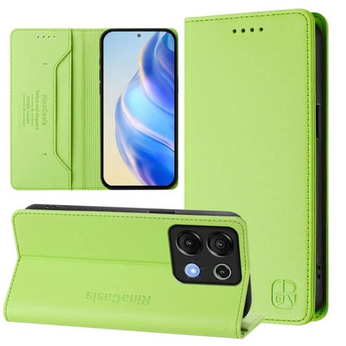 Funda de Cuero para Teléfono Umidigi G9 5G Rc01 con Doble Pliegue y Succión Magnética Rfid (Verde Hierba)