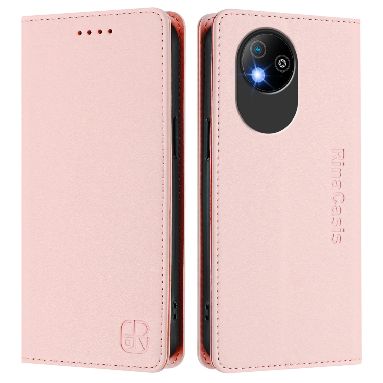 Funda de Cuero con Doble Pliegue y Succión Magnética Rfid para ZTE Blade A35 Lite/A35 Core Rc01 (Rosa)