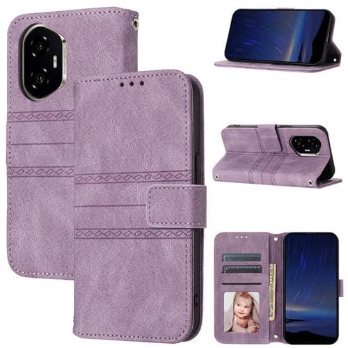 Funda de Cuero efecto Piel con Rayas en Relieve para Honor 300 (Morado Claro)