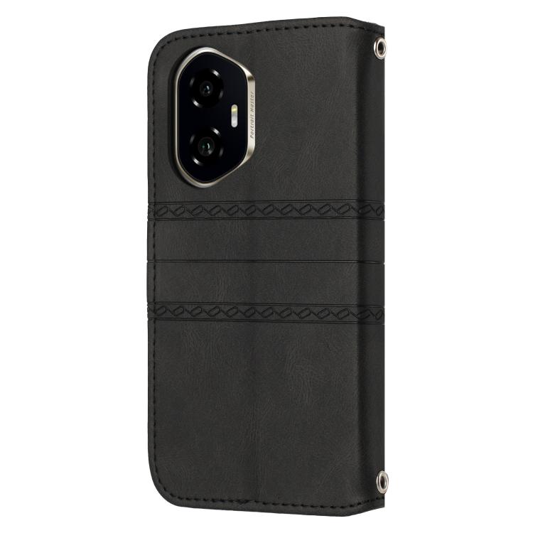 Funda de Cuero con Efecto Piel y Rayas en Relieve para Honor 300 (Negro)