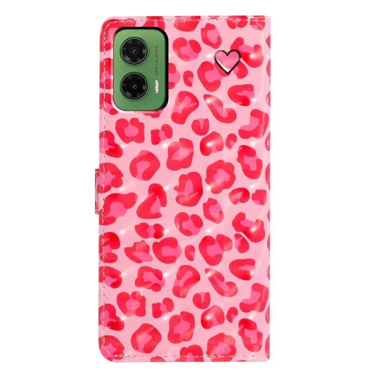 Funda de Cuero para Motorola Moto G35 con Estampado 3D de Leopardo Rosa