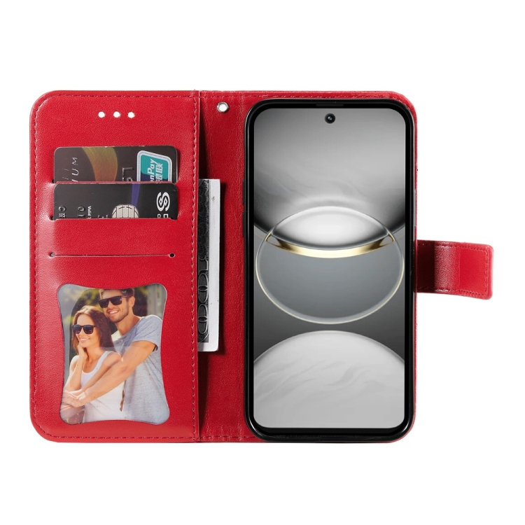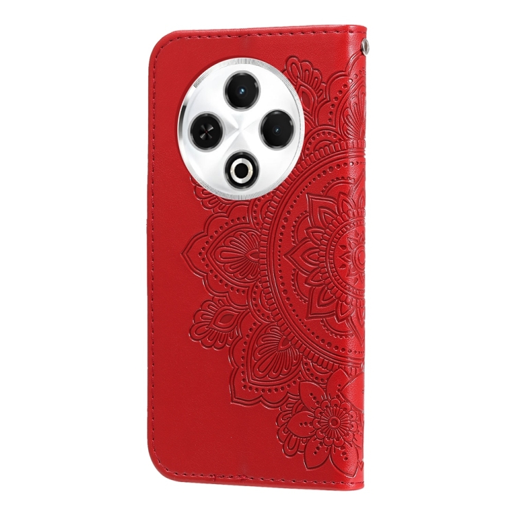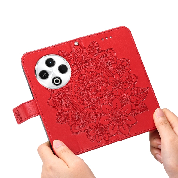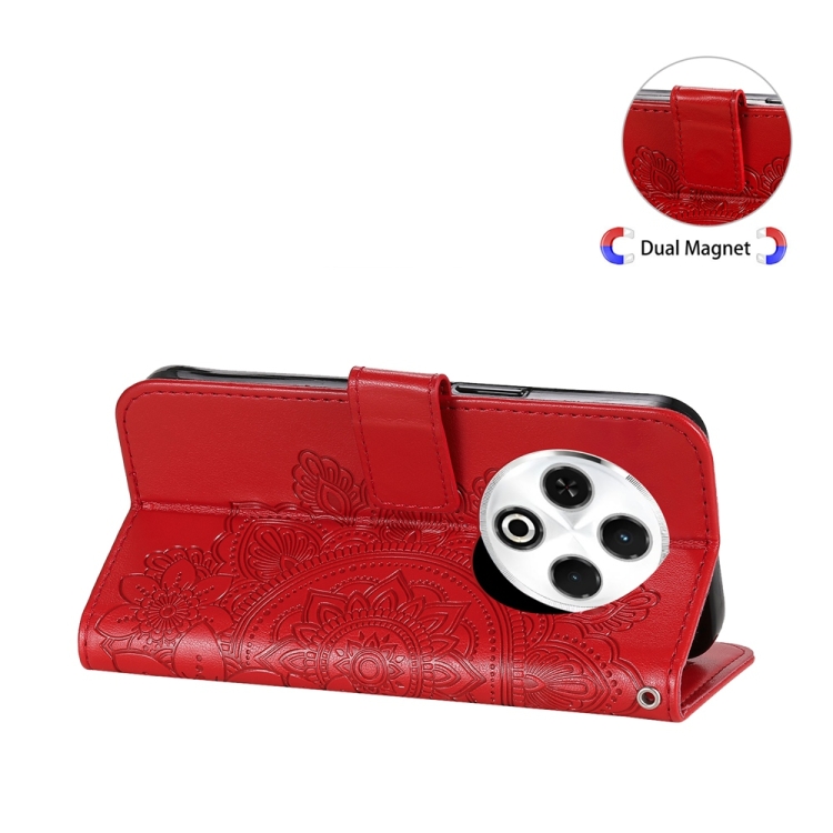 Funda de Cuero para Tecno Spark 30 4G con Estampado de Flores de Siete Pétalos (Rojo)