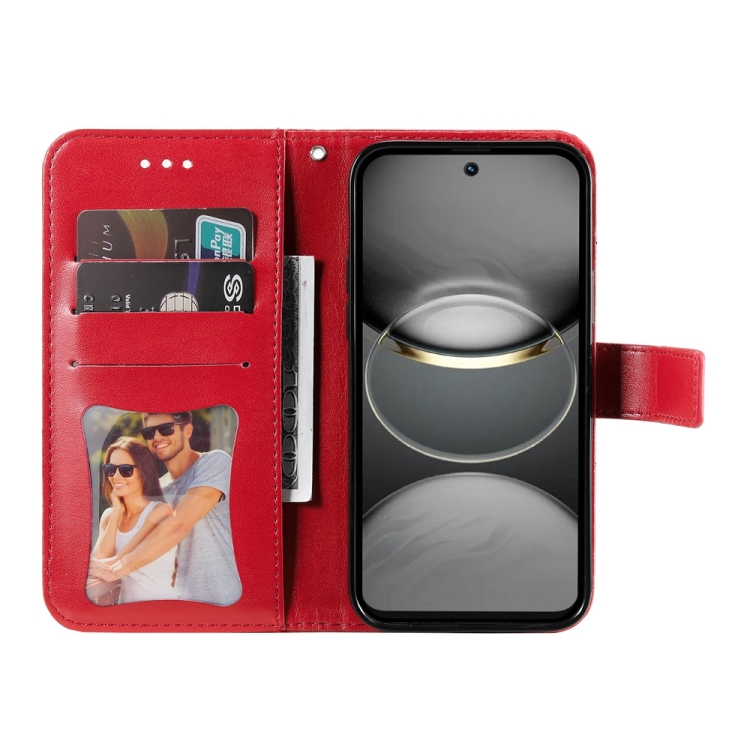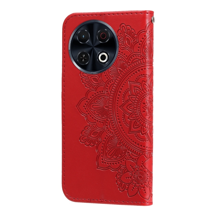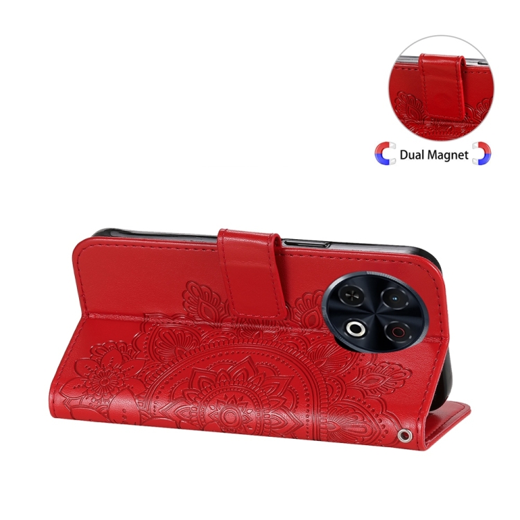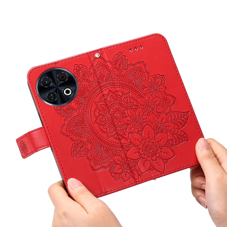 Funda de Cuero para Tecno Spark 30 Pro 4G con Estampado de Flores de Siete Pétalos (Rojo)