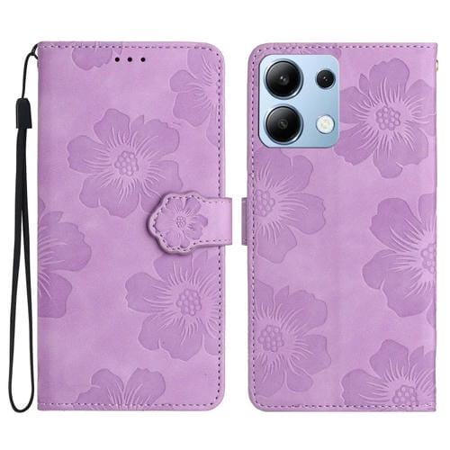 Funda de Cuero con Estampado de Flores En Relieve para Redmi Note 13 4G (Morado)