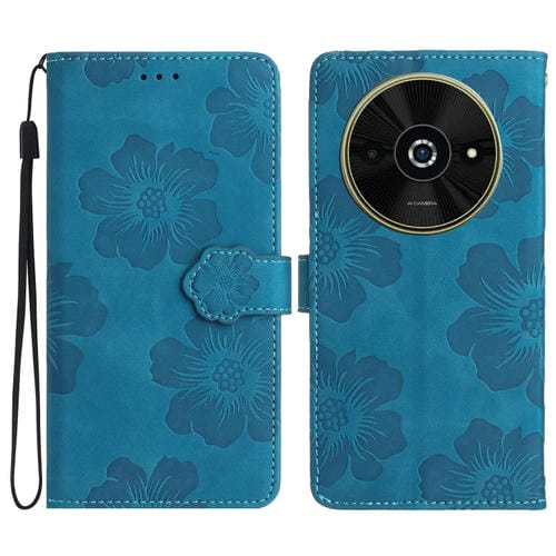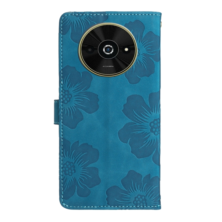 Funda de Cuero con Estampado de Flores En Relieve para Xiaomi Poco C61 (Azul)