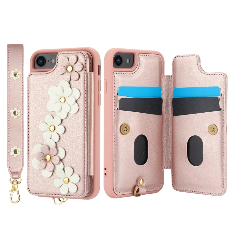 Funda de Cuero para iPhone 8 Plus/7 Plus Estampado de Flores (Oro Rosa)