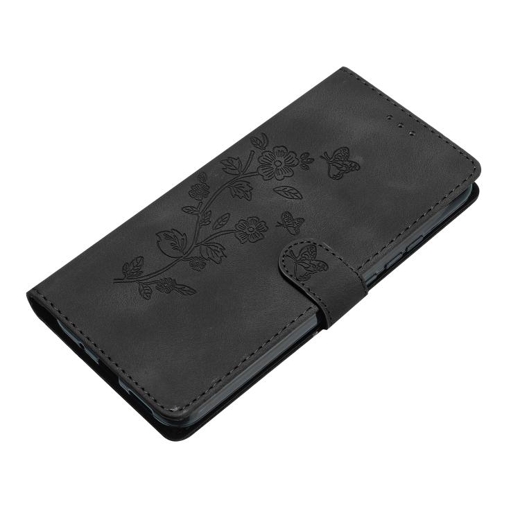 Funda de Cuero con Estampado de Flores y Mariposas para Google Pixel 9A (Negra)