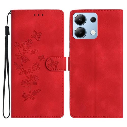 Funda de Cuero con Estampado de Flores y Mariposas para Redmi Note 13 4G (Rojo)