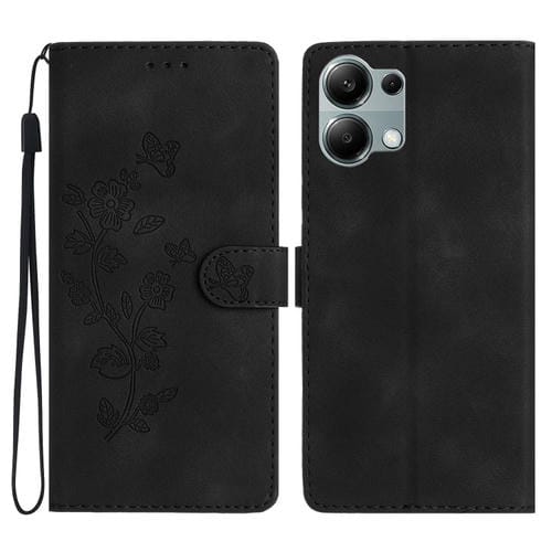 Funda de Cuero con Estampado de Flores y Mariposas para Redmi Note 13 Pro 4G (Negra)