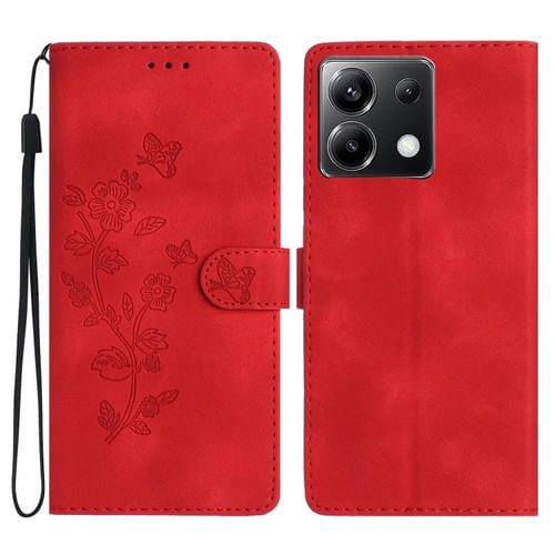 Funda de Cuero con Estampado de Flores y Mariposas para Xiaomi Poco X6 (Rojo)