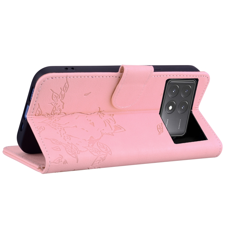 Funda de Cuero con Estampado de Gato para Xiaomi Poco X6 5G (Rosa)