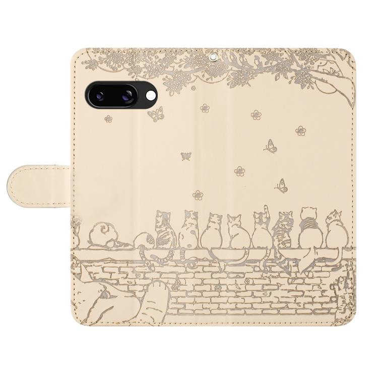 Funda de Cuero para Google Pixel 9A con Estampado de Gato y Cordón (Beige)