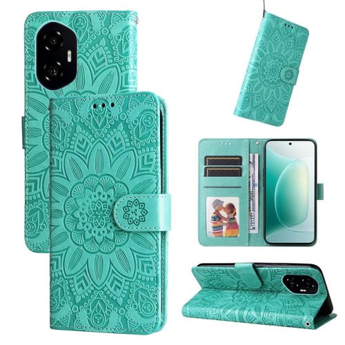 Funda de Cuero Honor 300 con Estampado de Girasoles en Relieve (Verde)