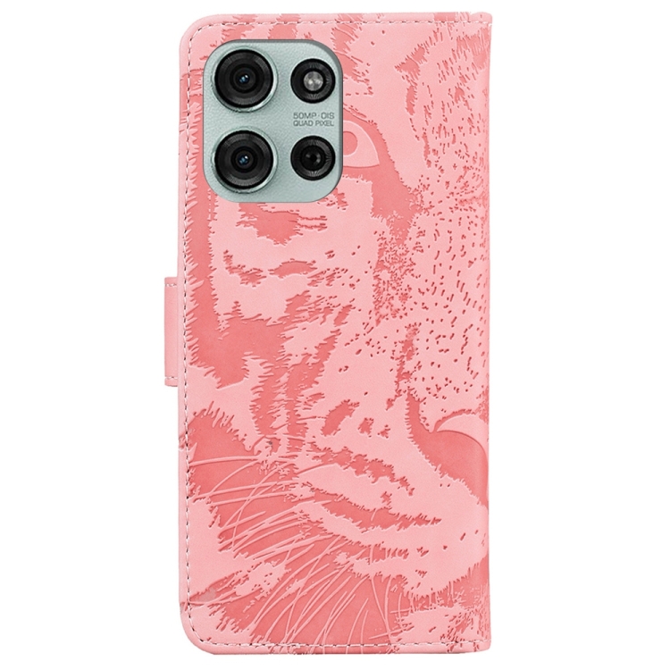 Funda de Cuero para Motorola Moto G75 5G con Estampado de Tigre (Rosa)
