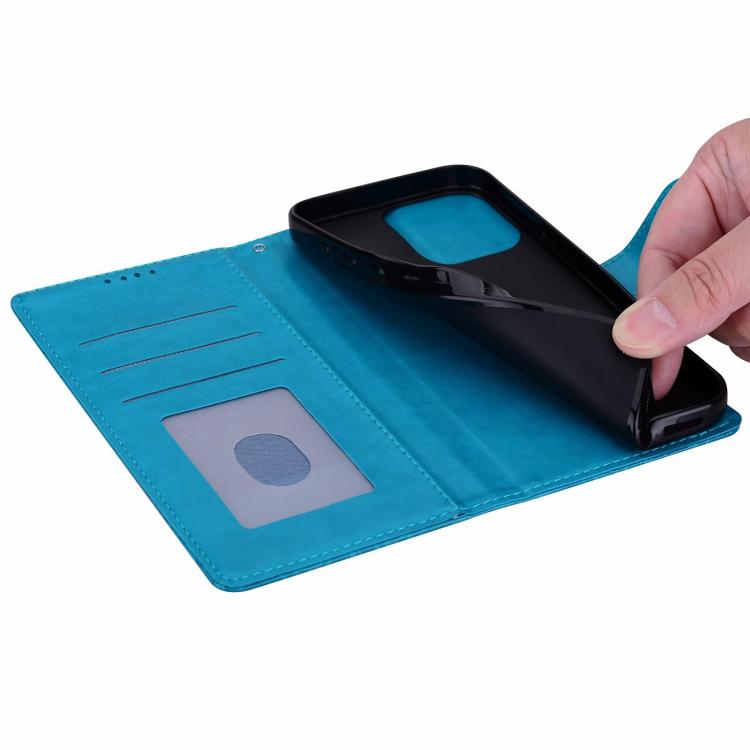 Funda de cuero con estampado floral en relieve para Honor 400 Global (156,5 mm) (azul)