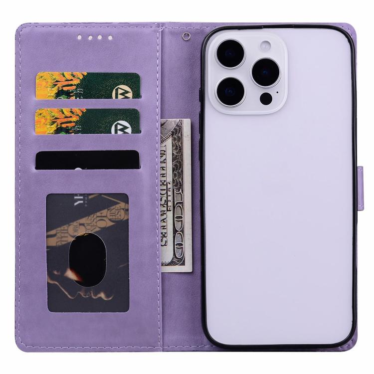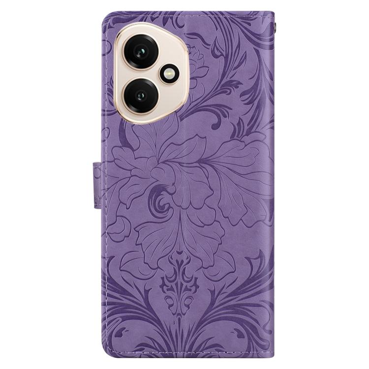 Funda de cuero con estampado floral en relieve para Honor 400 Global (156,5 mm) (morado)