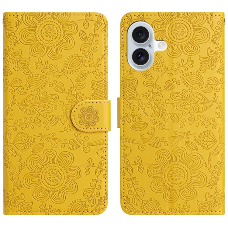 Funda de Cuero para iPhone 16 con Estampado Floral en Relieve (Amarillo)